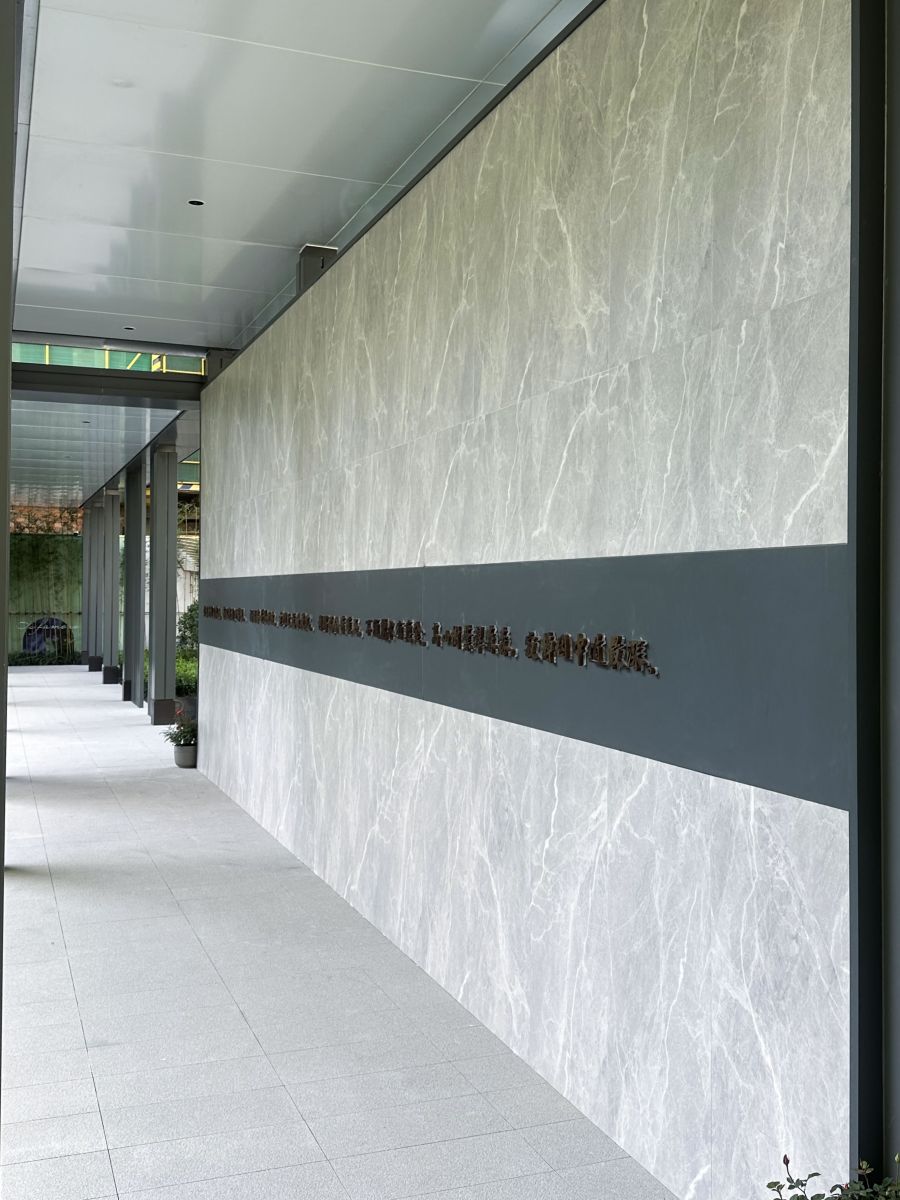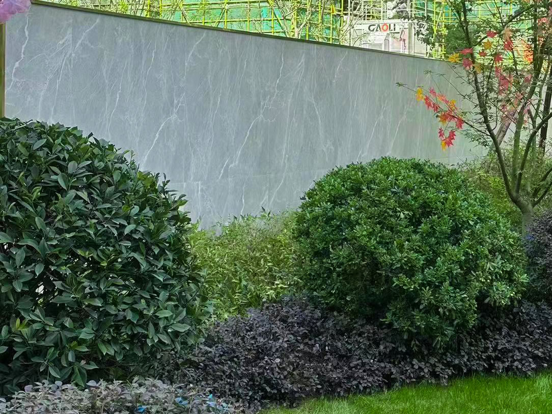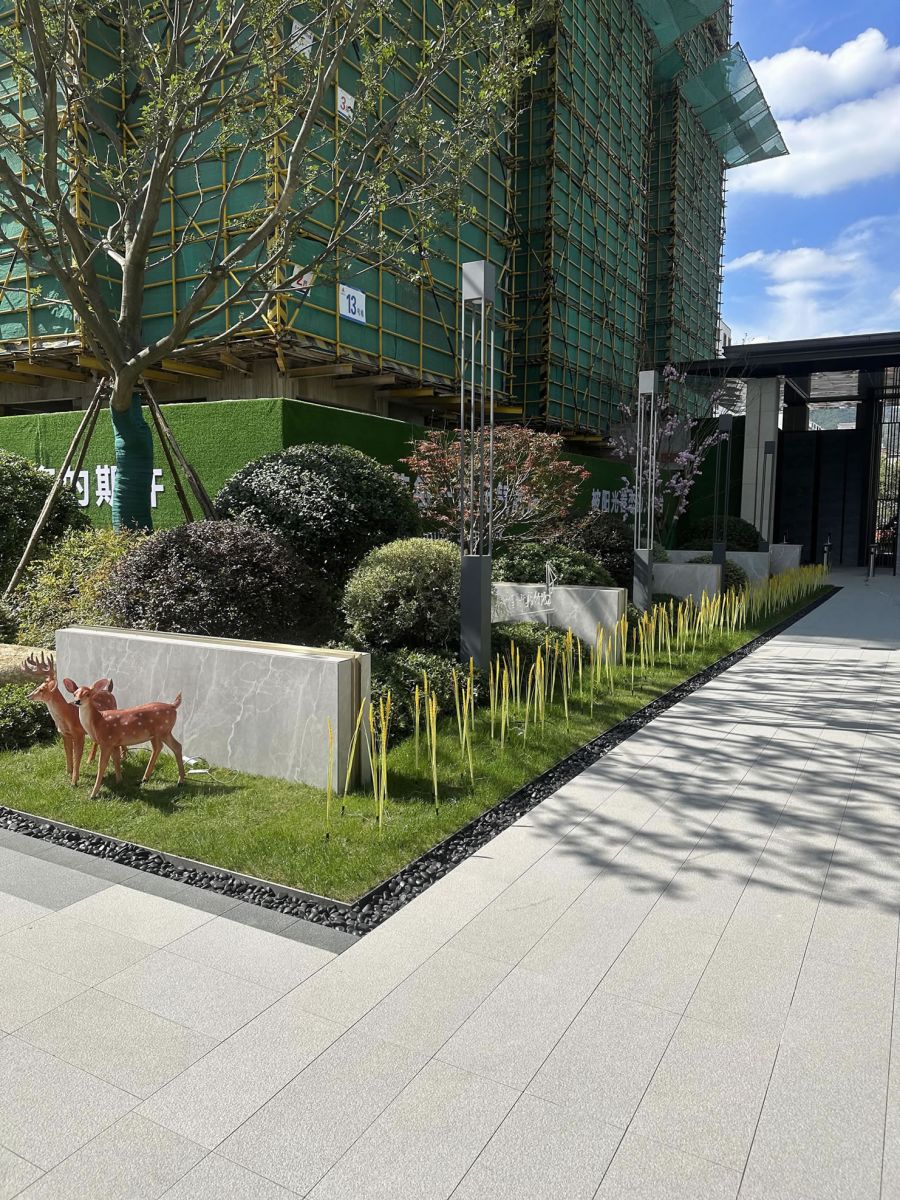 項目位于浙江麗水市,建筑面積18萬平方米。 小區(qū)景墻使用600*1200希臘淺灰干掛施工, 園林地鋪使用300*900芝麻灰鋪貼。 整體效果色澤均勻,整潔大氣。