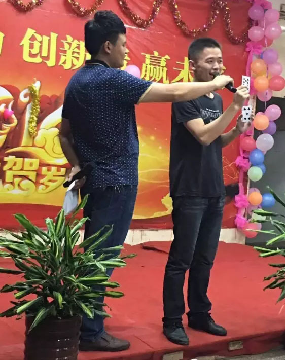 營(yíng)銷(xiāo)部蔡培源現(xiàn)場(chǎng)帶來(lái)的撲克牌游戲展現(xiàn)出多才多藝;品保部曾茂霞的手語(yǔ)舞蹈《爸爸、媽媽》、品保部婁潤(rùn)碧的女兒舞蹈《快樂(lè)你懂得》、技術(shù)部帥哥靚女的舞蹈《練舞功》把晚會(huì)推向了高潮。