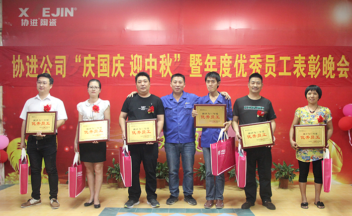 9月29日晚,金秋送爽,星空璀璨,協(xié)進廠區(qū),華燈輝映,彩旗飄揚。為了慶祝即將到來的中華人民共和國68周年華誕,喜迎中秋佳節(jié),同時為了表彰先進、樹立榜樣,鼓勵“人人爭當(dāng)模范”的工作激情,弘揚“正品、精工、盡美、至善”的企業(yè)理念,倡導(dǎo)“攜手創(chuàng)輝煌,創(chuàng)新求卓越”的協(xié)進精神,協(xié)進陶瓷2017年歡度國慶喜迎中秋暨優(yōu)秀員工表彰文娛晚會在公司禮堂隆重舉行。